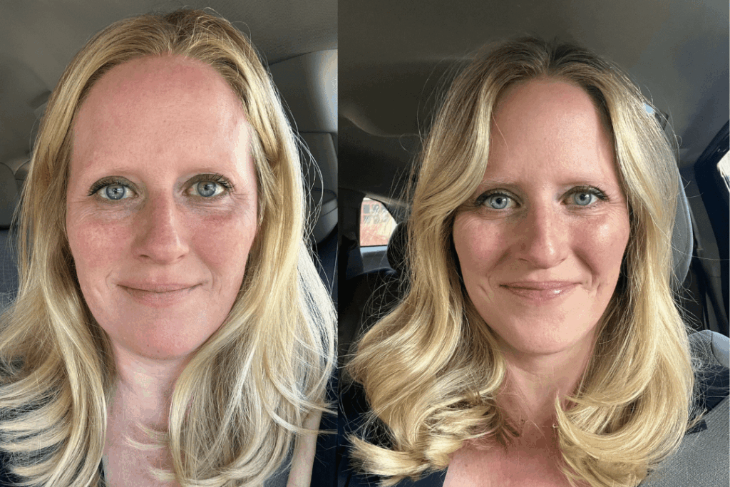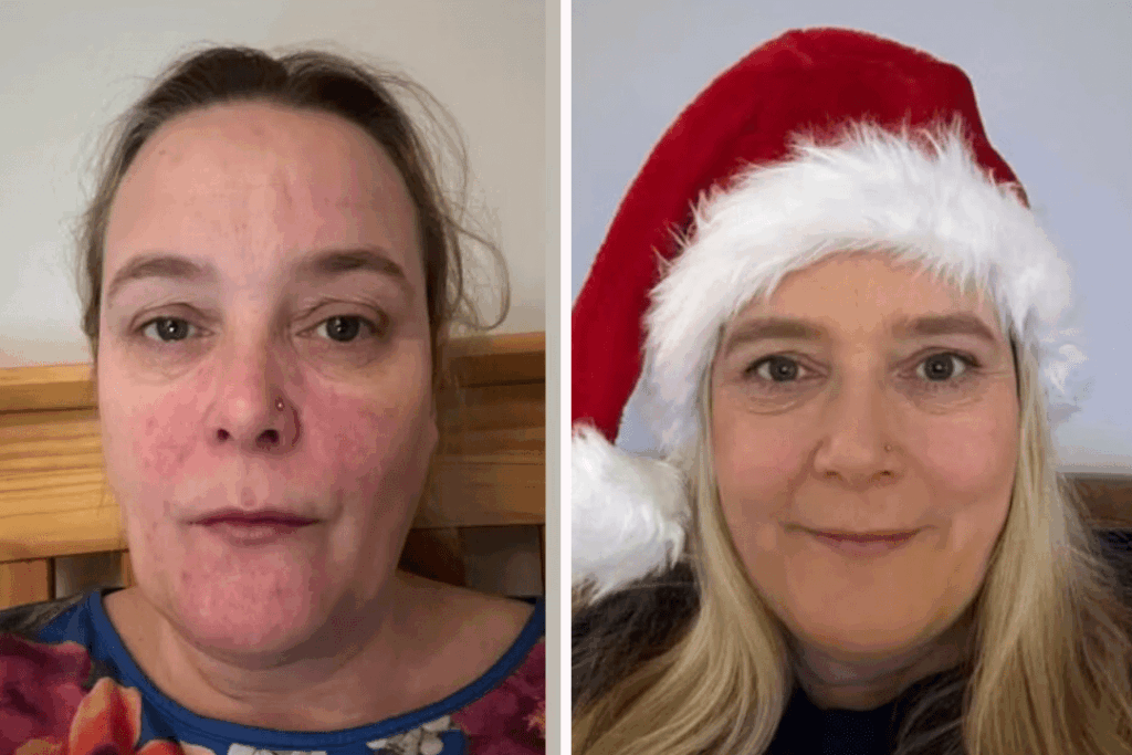 Your body feels heavy and tired. Sleep is still broken – you’re waking up at 4am, anxious and ashamed, staring at the ceiling. Your face shows the toll: puffiness that concealer can’t hide, redness creeping across your cheeks that makeup can’t quite cover. The wine calories have settled around your middle and your clothes feel tighter.